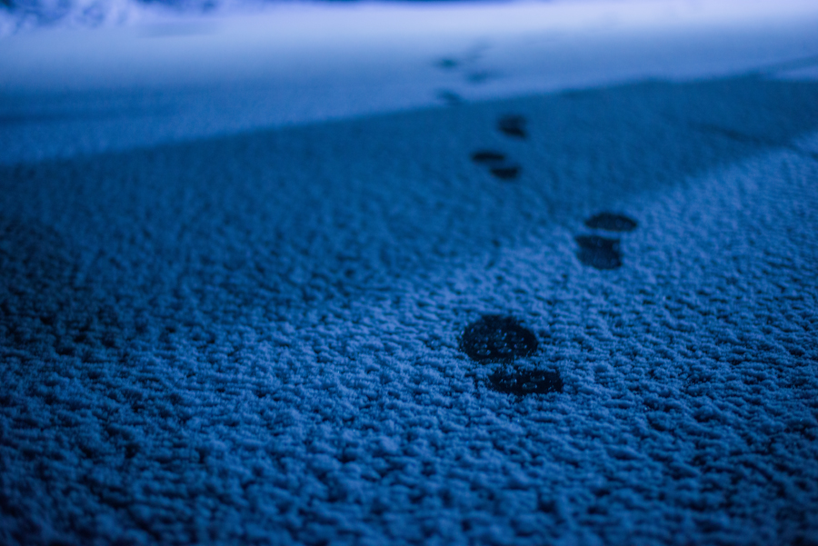 足跡撮るために、足跡残した後に画角に写らないようにぐるっと回って撮影。
