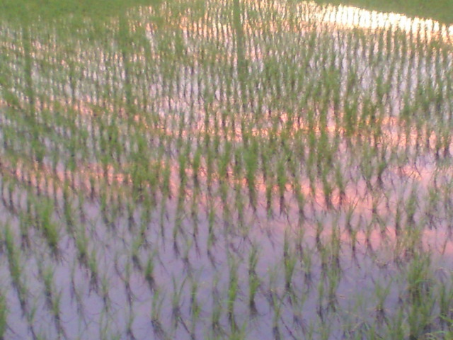 田んぼに映る夕焼けはキレイでした。