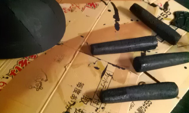 何か下地を塗ったら炭のようになった(笑)